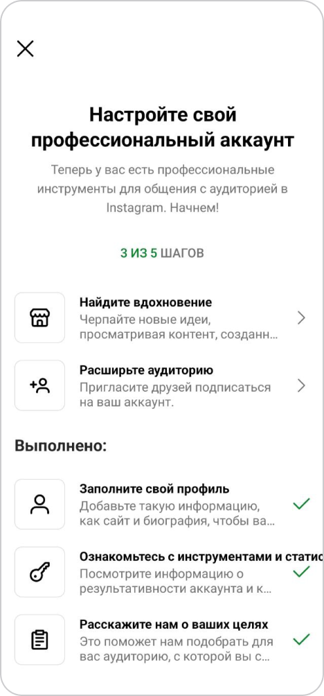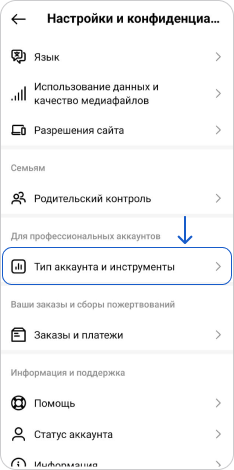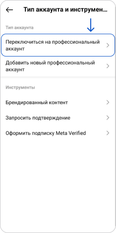 Выберите "Переключиться на профессиональный аккаунт"