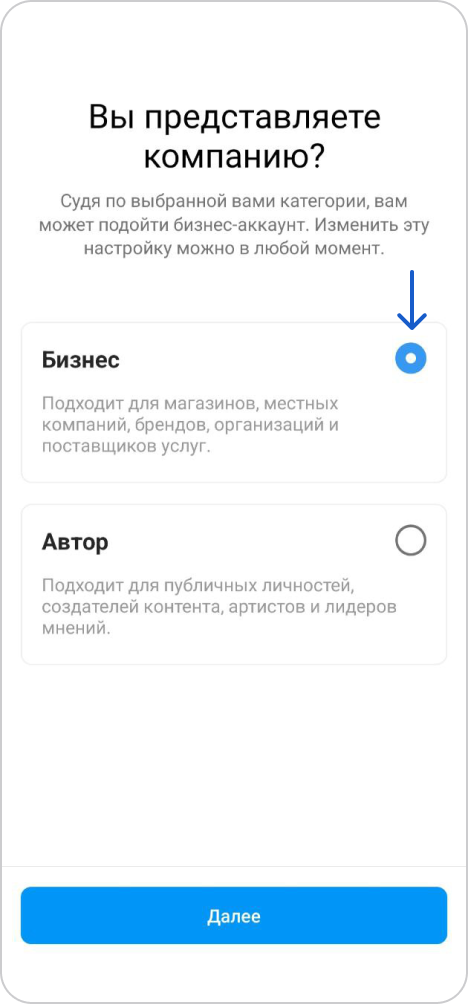 - Выберите бизнес-аккаунт Instagram, для которого добавляете канал и нажмите «Далее».