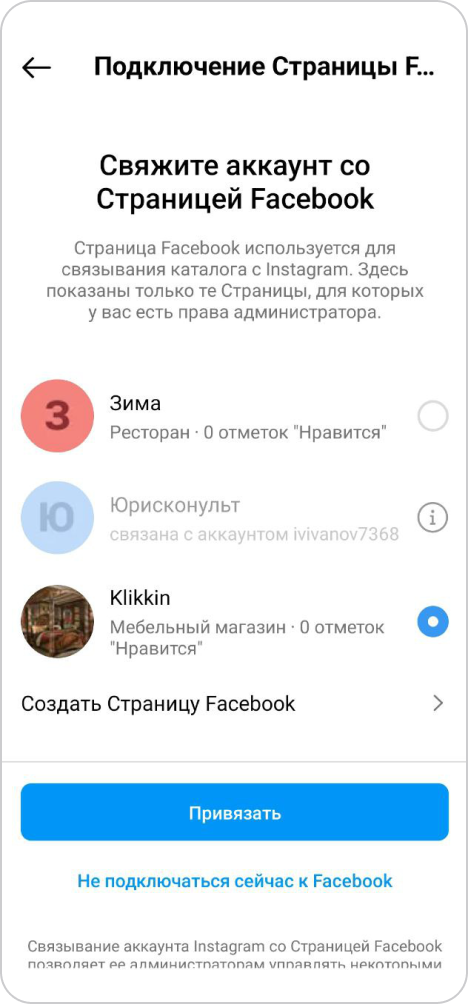 Cвяжите аккаунт Instagram со страницей FB