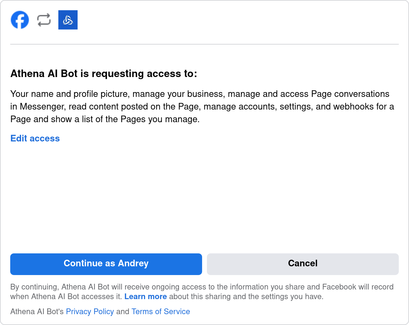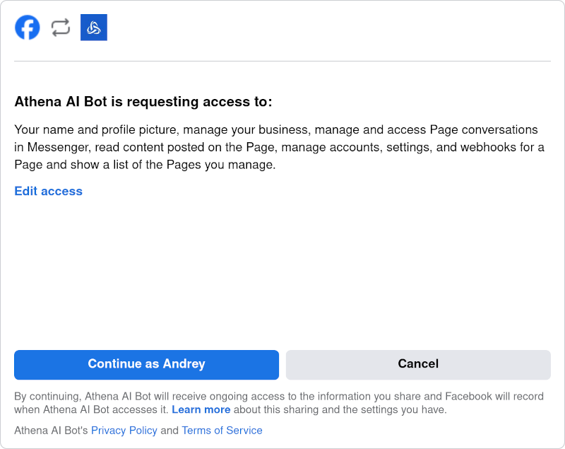- Подтвердите права доступа и нажмите “Продолжить как [имя пользователя]”.