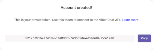- На экране появится токен вашего бота. Токен — это уникальный ключ состоящий из набора букв и цифр. Скопируйте токен, он понадобиться для подключения к Athena.